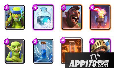 这个版本一般像箭雨、哥布林投矛手这些低费解围卡,过渡手牌卡都是常用卡,建议搭配带上。当然换防御塔也可以,建议电塔,低费且对地对空,性价比高。