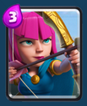 弓箭手原先是比较冷门的一张牌,作为低费远程单位无法和哥布林投矛手竞争,但是最近的一次版本更新,把弓箭手的攻击前摇大大缩短,基本做到瞬发出手,弥补了弓箭手原先出手慢的致命弱点,弓箭手开始逐渐热门起来。同样的,作为远程单位的基础模型,陆空兼顾、输出稳定、生命值较低、费用攻速和移动速度中等、一次出现两个单位相当于双攻击点,升级攻击力成长比血量成长明显,同样的也是中规中矩的远程单位。