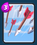 万箭齐发当之无愧作为S级卡牌,几乎所有卡组都需要带上这张法术去克制很多威胁较大的卡牌。施放需要谨慎,同时不要为了谈一点微不足道的皇家塔伤害盗贼打歪了没有清理干净敌人,得不偿失。不要随便对皇家塔和坦克施放,尽可能做到秒杀和配合皇家塔清怪的左右,特别是在对方有哥布林投掷桶、亡灵大军以及骷髅军团等卡牌的时候随便施放,所以现在公主骗箭雨已经非常流行了,三思而后行,战斗中立刻熟悉记忆对手的卡牌也是基本功之一,更是成败的细节之一。