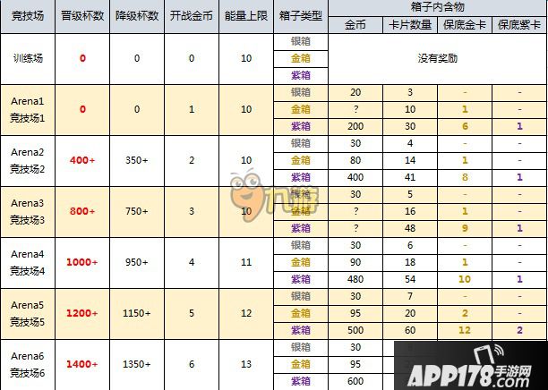 3、高级竞技场宝箱,能够开出所有低级竞技场(解锁)的卡牌。