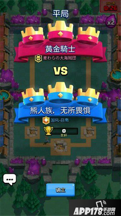 APP178手游网>皇室战争>游戏攻略>皇室战争三冠平局图 三冠平局及1血平局