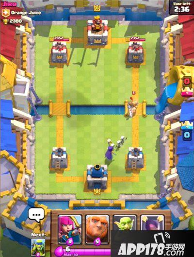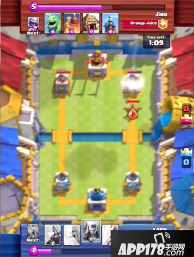 《皇室战争九游版》的主要玩法是竖版对线推塔,最好玩的塔防手机游戏,玩家可以通过卡牌召唤怪物和法术,放置在右侧的道路上,让他们缓缓走上去攻击敌对方的城堡;同时,敌对方也会放置怪物和法术在另一条道路上,以攻击我方城堡。双方持续交战,直到一方推倒另一方,使其主城堡被毁便可获得胜利。 这一种玩法就如很久之前推出的 Castle Raid《城堡保卫战》一样,以秒为计算单位来积累点数,而每张卡牌又会消耗不同的点数。面对时间的限制以及敌对方的势力要如何取舍?还是要看玩家的策略以及运气(抽卡部分)。 标签:塔防