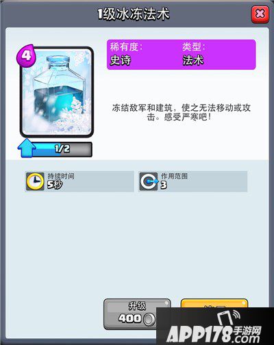 6.冰冻配合女武神,小皮卡等半肉半输出单位进行防守,可以解三个火枪手,皮卡,王子之流高质量生物的威胁。等待敌方过河,配合箭塔,更能赚到不少费用。