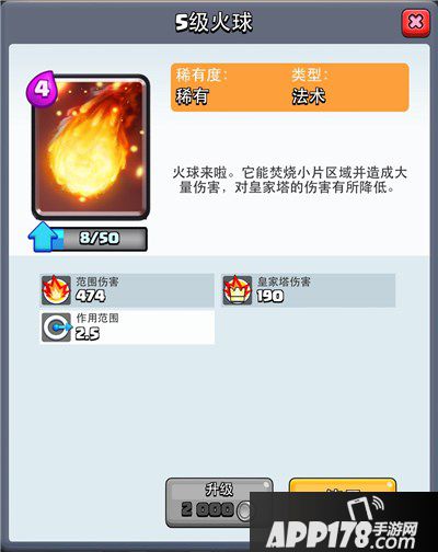 建议:火球和箭雨一样也是一张万金油的解场法术,范围2.5和小闪电一样,但火球的伤害更高,可以防御半肉的单位如野蛮人,女枪,法师等。火球的亮点在于有一个短暂的击退的效果,在火球落地后,强制周围单位位移,火球在进攻防守时利用好这个特效能发挥出超值的效果。野猪流带火球也可以解决一定的aoe不足的问题。简言之,火球是一个性价比高稳定的解中等生物的好选择。