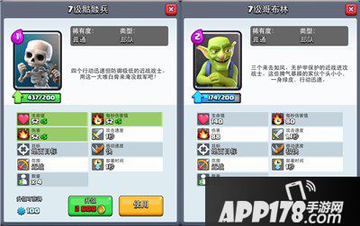 骷髅兵、哥布林:低费近战兵。主要用于和野猪一同冲塔,或者在对面关键卡 例如法师、女巫、女枪过河后 直接放下捅死, 或做拉扯,放在中间,拉走皮卡超人、王子、骷髅巨人
