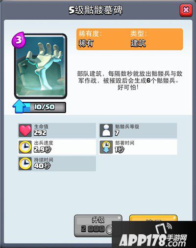 5.小骷髅的优点在于一费四个单位,比哥布林费用低,数量多,能多抗一刀伤害,是最好的炮灰。