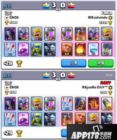 APP178手游网>皇室战争>游戏攻略>皇室战争皮狂三卡组 吾以暴力破之