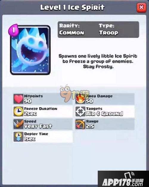 皇室战争冰雪精灵怎么样?相信大家看到冰雪精灵就会想起之前新推出的火灵啦。而作为1费普通卡的雪精灵,作用确实不是很大,但可以造成冻结效果。下面APP178手游玉米就为大家详解冰雪精灵,一起看看吧。