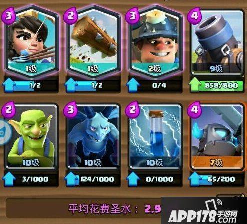 APP178卡主要用于砍巨人等的肉盾,配合小电清后排小单位(哥布林苍蝇)、矿工断中单位(火枪等)矿工/APP178卡+亡灵可以选择性的在另一条路上打一波,这样下来对面很难兼顾你这几个套路。