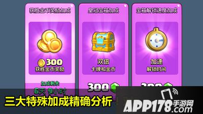 APP178手游网>皇室战争>游戏攻略>皇室战争三大特殊加成分析 哪个性价比最高