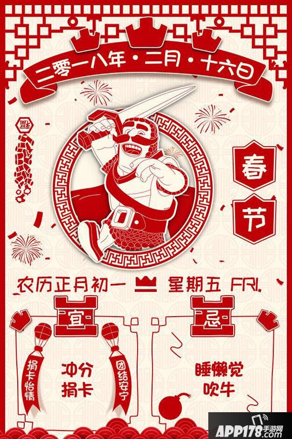 APP178手游网>皇室战争>游戏攻略>皇室战争狗年春节黄历 都有你喜欢的兵种