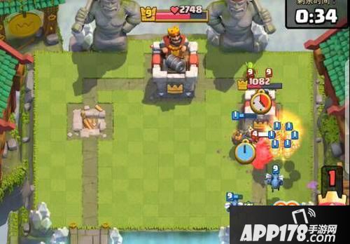 由于本套卡组以低费卡牌为主,因此倒计时阶段可借此优势迅速过牌,利用矿工与火球、小电共同完成对敌方残血公主塔的最终斩杀。