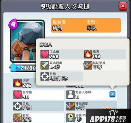 常见玩法:野蛮人攻城槌是一张具有很强机动性的卡牌,在对战中的玩法变化会很多样化,同时和其他单位相比也较为特殊,本身攻城槌的目标为建筑,且冲锋能够造成双倍伤害,在死亡时更是能够掉落两个野蛮人进行对战。