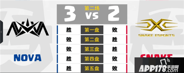 本场比赛的双方分别是皇室最古老的豪门NOVA和电竞新锐SNAKE。相对首场WE和EDG.M一边倒的局面,这场比赛的交战双方选手并没有让现场解说和场内外观众失望。在首局比赛中,越南天才少年Legend以强大的实力早早奠定胜局,帮助NOVA战队先下一城;在之后的两局比赛中SNAKE展示实力连扳两场。但是姜还是老的辣,NOVA展现了他们高深莫测的实力,最终完成了让2追3的好戏。最终NOVA以3:2为自己夺得了赛季第一分!