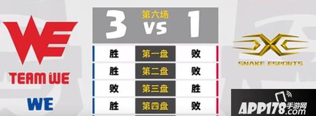 本场比赛双方分别是传统豪门WE和电竞新锐SNAKE,相对前一场NOVA和EDG.M的一边倒,本场比赛擦出了绚丽的火花。在首局比赛中,亚洲之鹰凭借其强大个人能力2:0兵不血刃拿下比赛。在尚未明朗的2V2比赛中,WE技高一筹赢得比赛。在悬崖边上的SNAKE放手一搏2:0拿下第三局。但是WE的 KARRY没有让悬念留到最后,直接3:1痛快结束比赛。其结果基本符合解说的赛前预测和大家对两队实力的认知。