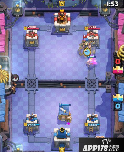 《皇室战争九游版》的主要玩法是竖版对线推塔,最好玩的塔防手机游戏,玩家可以通过卡牌召唤怪物和法术,放置在右侧的道路上,让他们缓缓走上去攻击敌对方的城堡;同时,敌对方也会放置怪物和法术在另一条道路上,以攻击我方城堡。双方持续交战,直到一方推倒另一方,使其主城堡被毁便可获得胜利。 这一种玩法就如很久之前推出的 Castle Raid《城堡保卫战》一样,以秒为计算单位来积累点数,而每张卡牌又会消耗不同的点数。面对时间的限制以及敌对方的势力要如何取舍?还是要看玩家的策略以及运气(抽卡部分)。 标签:塔防