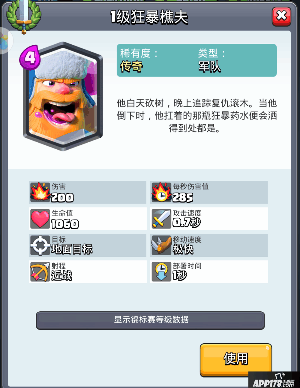 APP178手游网>皇室战争>游戏攻略>热门单卡:狂暴樵夫卡牌技巧详解