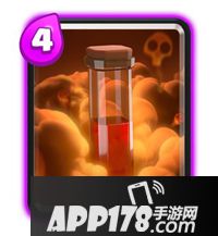 如果说登场率第一的小闪是快攻卡组的辅助好手,那位列第三的毒药法术则是各种推进流卡组必备的清场法术。大范围持续输出、清理防守部队、稳定消耗塔血,毒药法术能高效地掩护重型单位推进,成为皮卡茅房、巨人双王等卡组最佳的法术搭配。
