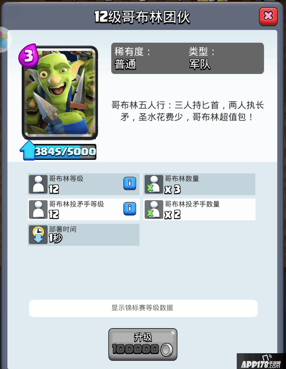 APP178手游网>皇室战争>游戏攻略>热门单卡:哥布林团伙卡牌技巧详解