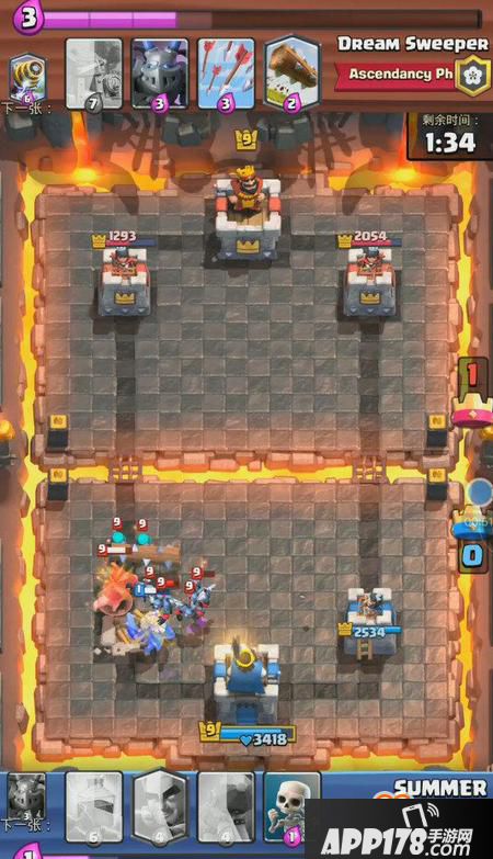 想要防守住这波就要有所取舍,我方扔出大皮卡砍死电磁炮以后拉扯走亡灵大军,幽灵和防御塔先消灭巨人,成功续命!(此处应该为小编的机智点赞)
