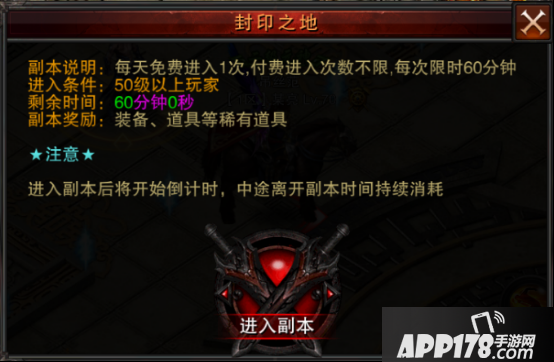 点击他,会出现这个窗口。这个窗口告诉了我们不少的信息,比如每天进入次数、进入条件、剩余时间等等,话不多说,马上进去体验一下!