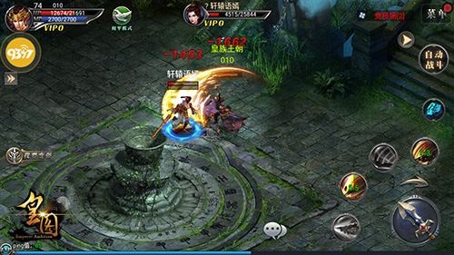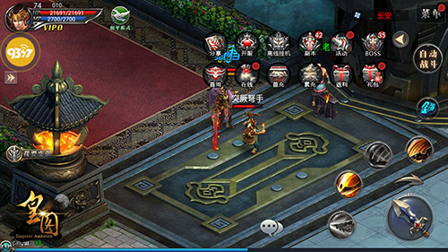 由于屏幕大小的限制,玩家们对于手游所带来的操作体验向来不是很满意,尤其是动作RPG类手游。而9377《皇图》采用了点击屏幕以及屏幕左下方虚拟按钮相结合的方式来让玩家控制人物角色的移动,而人物技能则是通过点击屏幕右下方的技能快捷键按钮轮盘来直接释放。虽然游戏当中的技能比较多,不过玩家可以通过旋转技能转盘来完成一轮流畅的技能施放。此外,在竞技场等特定的PK场景当中,游戏也会只能隐藏对PK无用的UI,让玩家获得更为开阔的视野以及操作空间。总体来说,游戏的运行操作流畅性很高,即便是万人在线攻城也不会出现卡顿掉线的情况。