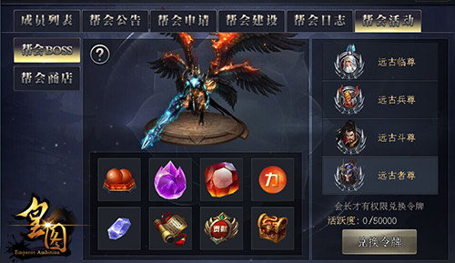 兄弟共赴天涯海角,群殴帮会BOSS!《皇图》此次新版本开放的帮会BOSS系统,一共包括远古临尊、远古兵尊、远古斗尊、远古者尊这四大BOSS。帮主可以消耗帮会活跃度兑换BOSS令牌,然后号召一定数量的帮会成员,在“天涯海角”活动地图召唤相应的BOSS,将其击杀便能够获得丰厚的奖励掉落!