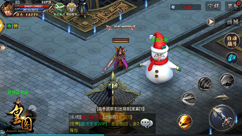 全民动手堆雪人,圣诞大使送壕礼!在《皇图》此次跨年的双蛋活动期间,皇城的勇士强者们只要共同努力,成功集齐雪人的帽子、鼻子、围巾以及眼镜这4个装饰部位,均可在“长安-圣诞大使”处领取百分百全民暴击BUFF和圣诞袜子礼物!而在提交装饰材料的同时,还能获得金猴礼盒的奖励!