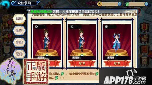 没有进入到淘汰争霸赛竞赛并且符合比赛积分条件的玩家,可以参与跨服PK冠军竞猜。竞猜玩法主要还是看大家的运气,在竞猜冠军的时候,小编建议可以优先考虑排名靠前的玩家。