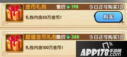 礼包内容:金币*10000,金宝箱*2,金钥匙*2,大体力丹*2,大修行丹*2