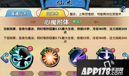 2、进入仙术界面后点击上面的灵宠术