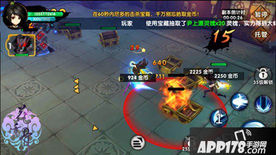 进入金库探宝副本大家可以看见副本中有许多的宝箱,控制好人物角色攻击宝箱,打爆箱子过后会爆出金币。金库探宝副本只有60秒的副本时间。因此,大家要在60秒的时间内,控制好人物角色尽可能打爆更多的箱子,进而拾取更多的金币。