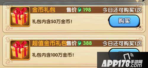 礼包内容:金币*10000,金宝箱*2,金钥匙*2,大体力丹*2,大修行丹*2