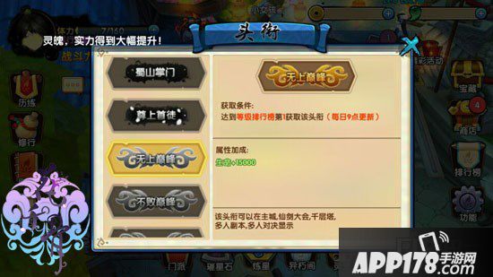APP178手游网>花千骨>游戏攻略>花千骨手游头衔作用详解 新手头衔获取方法