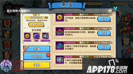 4、商店可以用勾玉购买大体力丹,VIP等级越高可以购买的次数越多,对于勾玉数量充足的玩家来说购买体力丹是一个不错的选择。购买的次数越多,体力丹所花费的勾玉就越多,一般玩家建议购买3-4次就可以了。