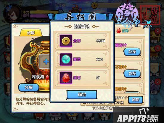 18、 紫色品质装备都可以在异朽阁进行熔炼获得血石,不需要的橙色品质装备也可以进行熔炼,一些橙色品质以上装备进阶到一定程度时需要消耗同样的装备。因此,在熔炼的时候要注意一些橙色装备不要熔炼错了