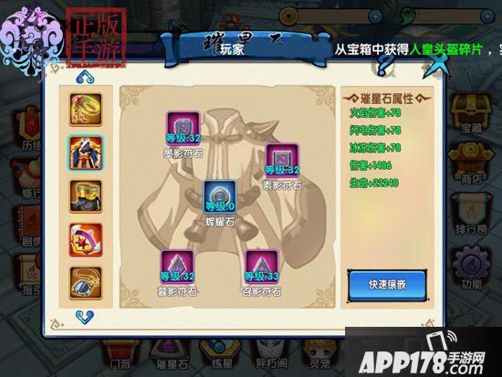 前期璀星石星槽上不要留有空余,有了璀星石就装备上。紫色品质的璀星石是平民玩家的首选,在前期副本中紫色品质的璀星石也较容易获得。在仙剑大会商店中可以用仙剑大会名望兑换红色品质的璀星石。