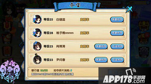 点击快速抢夺,人物角色便进入到抢夺状态了。获胜后有一定几率抢到对方手中的碎片。人物角色进行夺宝会消耗人物角色的修为值,当人物角色的修为值为0的时候,这时人物角色将不能再进行夺宝。