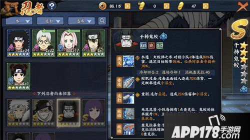 被动-【查克拉暴食】:曾受到鬼鲛体术伤害的忍者查克拉小号增加20,且释放奥义时鬼鲛获得20查克拉。