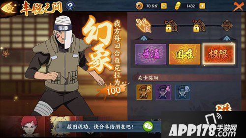 幻象奖励的是碎片,每次都会掉落一些A级忍者碎片。每周都会刷新不同的挑战对象,玩家可以刷出不同的碎片奖励。这个挑战很简单,只要玩家组合不是太烂一般都能过。