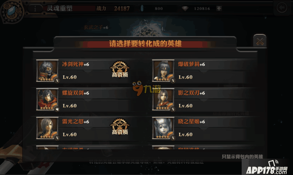 备注:当玩家等级达到60级以后,就可以获得重塑英雄灵魂的能力,将队伍中多余的英雄转化为玩家需要的英雄。