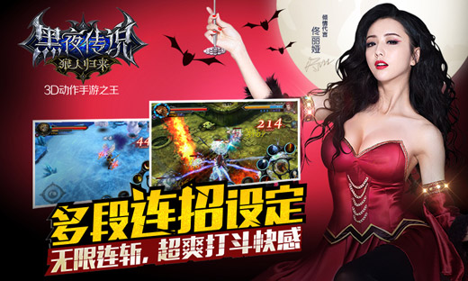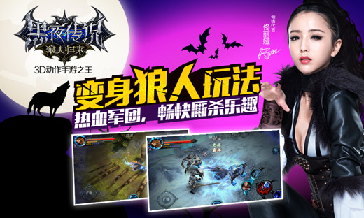 人气明星“佟丽娅”倾情代言推荐,3D动作手游之王《黑夜传说之狼人归来》重新定义动作手游!全息三维立体画面、多段连招,无限连斩,极致打斗、击飞浮空、变身狼人、大型军团战等玩点著称,堪称2015年最刺激最爽快极致动作手游,开启动作手游的革新时代。