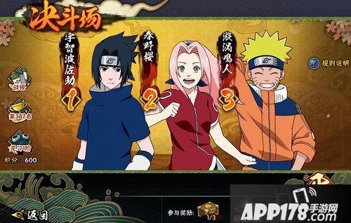 决斗场是匹配其他玩家进行PK,选择3个忍者逐一对战,直到某一方3位忍者尽数死亡才作罢,不得不说又新增了游戏的乐趣哦。