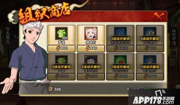 组织的商店里面可以购买到很多有用的东西,无论是忍者的碎片以及各种强化符文,都可以在组织的商店里面进行购买,而且组合会随着组织的等级提升而解锁更多的相关内容。