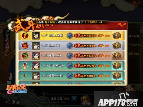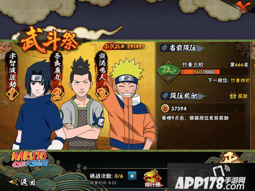 武斗祭以三忍者一组发起挑战或防守,通过挑战胜利获得积分提升段位,战力越高胜利的希望也就越大。