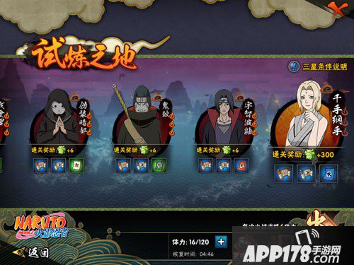 若在通关上还是有难度则应该考虑提升战力和计算BOSS出现时间等了,多次试练后会得到纲手出招的基本规律,然后尽量躲避通关也不会很难哦,坚持也是通关的一大要素哦