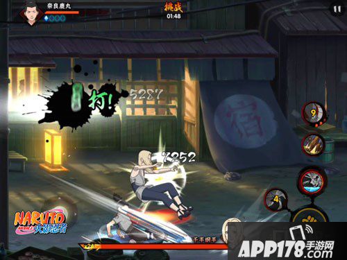 纲手副本分析:本关卡只有纲手一个强敌,她的攻击方式均简单、有力且范围很大,并且大多时间发起的攻击都能使忍者浮空,然后发起持续浮空攻击。