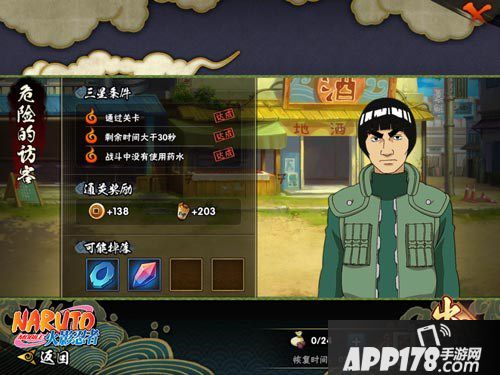 当开启第五章传说的忍者,大家可以明显感觉到难度上来了,想要三星过关也不能一通乱打了。来到第五章的第二关,危险的访客,面对的是晓组织的鬼鲛。鬼鲛的远程技能,杀得人措手不及,派出凯老师!