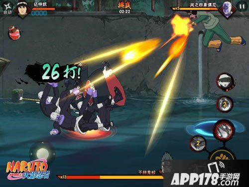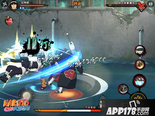 动力前奏曲+木叶刚力旋风很好的诠释了从底部到空中的全方位包围攻击方式!连招使用完后,有一个CD时间,再次提醒!记住不要硬碰硬!跟游击战一样,我们跑,等待时机到来,面对鬼鲛使用朝孔雀!使鬼鲛的血量从两位数达到个位数为最好效果!如果没有,重复使用连招!