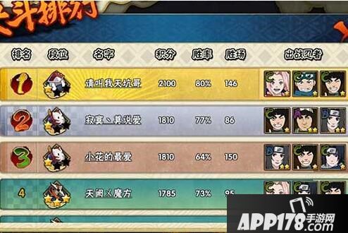 《火影忍者》手游的核心玩法就是决斗场,在这里,各位勇士可以派遣手中忍者一战高下,在排行榜中可以看到榜上有名的PK高手,其实想要榜上有名很容易,不需要战力超群,比如在新服务器中,只需要胜利20场,也就是1200分,就可以在榜上占到100以内的位置了。